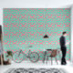 Ein wunderschönes Blumendesign mit rosa Blume und aufwändigen Liniendetails, umgeben von grünen Blätter. Die lebhaften Farben und das sich wiederholende Muster schaffen einen frischen, lebendigen Look, perfekt für Frühlings- oder Sommerprojekte.