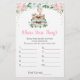 Diese bezaubernden Wo waren Sie Spielkarten sind eine lustige Brautparty-Aktivität. Sie können sie einfach während der Dusche herumreichen, wo sich die Gäste amüsieren werden, wo sich Braut und Bräutigam in jedem Foto befinden. Das Design umfasst Koffer und einen Globus mit rosa Aquarellblumen und Imitaten Goldfolie Confetti.