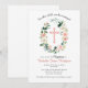 Eine einfache und doch schöne Taufveranstaltung mit einem Aquarellkranz aus Rosa und Blüten und Kreuzakzent. Einfach mit Ihren eigenen Daten personalisieren. Sie können aus verschiedenen Größen, Formen und Papiertypen wählen.