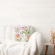Ein dekoratives Kissen mit lebhaften Blumenmustern, Erholungen auf einer weichen Oberfläche. Die Highlights, die faszinierenden Details der Blume und Blätter, die eine warme Atmosphäre schaffen.