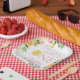 Pink florale Zitrusfrüchte 1. Geburtstag Party Papiertafel Floral und Zitrusmädchen zum ersten Geburtstag Teil Papier Platte mit einigen Zitronen, Orange, Blume und Blattwerk und eine moderne Kalligraphie mit einem Herz.