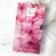 Vertikale Ohrring-Produktsichtkarte mit individuellem Logo und QR-Code auf einem rosa Aquarellfarben-Blume-Blumenhintergrund.