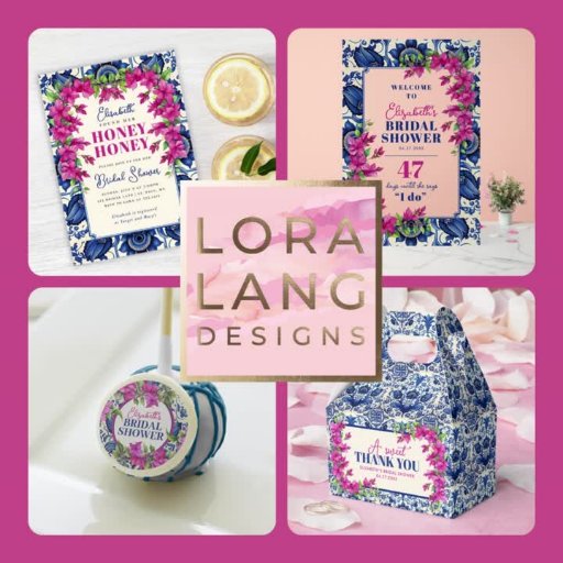 Pink Bougainvillea Blue Tile CollectionDesignt von Lora Langowski