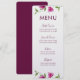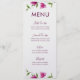 ElegantMenu Karte mit rosa Bouganvilla-Blumenillustration.