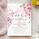 Feiern Sie die zukünftige Braut mit dieser eleganten Braudusche "Liebe in Bloom". Mit einem zarten, floralen Aquarell-Design in sanften Rosatönen strahlt diese Einladung Charme und Eleganz aus. Ein farbenfroher rosa Bogen und eine anmutige Schriftzeichen-Typografie fügen eine romantische Touch hinzu und machen sie zur idealen Wahl für ein Party, eine Feder oder ein Brautparty mit Blumenmotiven.