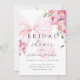 Feiern Sie die zukünftige Braut mit dieser eleganten Brautdusche. Mit einem zarten, floralen Aquarell-Design in sanften Rosatönen strahlt diese Einladung Charme und Eleganz aus. Ein farbenfroher rosa Bogen und eine anmutige Schriftzeichen-Typografie fügen eine romantische Touch hinzu und machen sie zur idealen Wahl für ein Party, eine Feder oder ein Brautparty mit Blumenmotiven.
