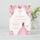 Diese elegante und glamouröse Geburtstagsfeier lädt zu einer schönen Prinzessin mit braunem Haar in einem rot-rosa Kugelkronen ein. Der Text kombiniert handgeschriebene Skripte mit modernen serifenlosen Schriftart für ein elegantes und raffiniertes Aussehen. Die Blumenarrangements, Schmetterling und Goldkonfetti bilden die perfekte Mischung aus rustikal und schick. Grafiken von www.etsy.com/uk/shop/SunflowerDayLove