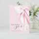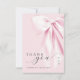 Mit dieser eleganten rosa Bogen Dankeschön-Karte. Diese Karte ist mit romantischen handgeschriebenen Schriften, einem weichen, rosa Farbband und einer zeitlosen Koquette-Ästhetik gestaltet und ist der perfekte Weg, um Ihren Gästen zu danken, dass sie ihren besonderen Tag feiern.