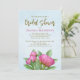Dieses Design bietet eine boho Braudusche-Einladung, denn die Braut ist die perfekte Sommergarten-Vegetation, botanisches Blumenmuster, eine elegante Kalligraphie-Schrift, hübsche Pink-Peonies, minimalistische Blume, ein bohemianischer Stil mit einem blauen und blütenrosa Thema und minimaler Typografie