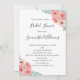 Rosa weiße Blume mit Grünpflanzen für diese Brautdusche. Alle Felder können bearbeitet werden, sodass Sie die Details für den jeweiligen Party-Typ hinzufügen können. Die Rückseite der Karte ist ein schönes Grün, das die Blätter auf der Vorderseite aufnimmt.