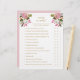 Romantisches Rosa und Weiß bemaltes Brautparty mit Goldtext. Ändern Sie den Titel und die Fragen auf alles, was Sie brauchen.