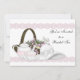 Eine Brauttee-Einladung mit einem hübschen rosa Tee-Set, weißer Bonette und einem Korb aus Blume mit rosa Spitzen-Trimm. Zurück hat eine weiche rosa Blume. Einfache Anpassung mit den Details für Ihre Veranstaltung.