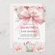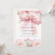 Weiß, mit einem großen rosa Bogen und rosa Blume geschmückt. Personalisieren und fügen Sie einen Namen und Party-Details hinzu. Zurück: pfirsich, cremefarbener Hintergrund.