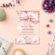 Der helle, durchsichtige Hintergrund ist mit einem großen rosa Bogen und rosa Blume geschmückt. Personalisieren und fügen Sie einen Namen und Party-Details hinzu.