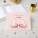 Eine rot-rosa Hintergrundfarbe. Die Einrichtung ist mit einem großen rosa Bogen geschmückt. Personalisieren und fügen Sie Ihren Namen, Text.
