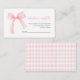 Rosa Bogen und Gingham Preppy Baby Dusche Diaper Raffle Gehäuse Karte.