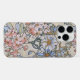 Ein iPhone 16 Pro Max Gehäuse mit einer Illustration von Alphonse Mucha (1860-1939), in dem blaue und rosafarbene Clematis-Blume auf einer Rebsorte dargestellt werden. Alphonse Mucha war während der Jugendstil-Zeit tschechischer Künstler.