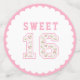 Diese süße 16 Konfetti hat die Zahl 16 in einer rosa Hütte Rose Muster mit Sweet in einem rosa Schriftart. Am Rand ist ein geschmolzener Rand.