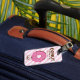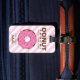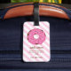 Dieser rosa Donut-Gepäckanhänger ist ein perfektes Gepäckzubehör für Mädchen. Mit dem personalisierten Namen vorne und anderen Informationen auf der Rückseite ist er besonders.