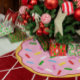 Rosa Donut mit farbenfrohen Sprinklen Polyester Weihnachtsbaumdecke