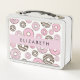 Rosa Donuts, weiße Donuts, Sprinklen, Ihr Name Metall Brotdose