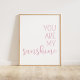 Sie sind My Sunshine, ein minimalistisches Typografie Zitat in einer rosa bedrückten Textur, perfekt für Babydekor, Kinderschlafzimmervorhänge oder kleine Kinderspielzimmer Wandkunst.