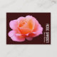 Eine Visitenkartenvorlage mit einem vertikalen Text. Attraktive Rose auf der Vorderseite. Firmenname in rotiertem Text auf der Vorder- und Rückseite mit allen anderen Kontaktdaten auf der Rückseite. Das Foto oder Bild auf der Vorderseite kann ebenfalls geändert werden. Das Design erlaubt auch Raum für zusätzliche Anpassungen.