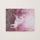 Pastellrosa Einhorn im Hintergrund von rosa blühenden Bäumen und rosa Blume Puzzle Puzzle