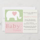Rosa und grüne Polka Punktmuster mit Elefant und Herz-Silhouette. Diese Einladung für die Babydusche ist perfekt für die Dusche eines Mädchens.