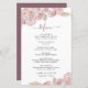 Dusty Pink und Pastel Vanilla Rose Wedding Menu Einladungen - mit staubigen rosa handgeschriebenen und eleganten schwarzen Drehbüchern mit rot rosa Rosen und creme beige trockenen Blätter. Die Rückseite dieser romantischen Karte ist staubrosa.