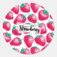 Rosa Erdbeere auf weißem Hintergrund Runder Aufkleber