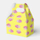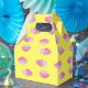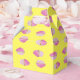 Rosa Erdbeerkuchen auf gelb Geschenkschachtel