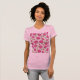 Weiblicher T - Shirt mit schönen rosa Bäckereien und grünen Blätter auf rosa.