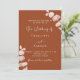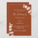 Dunkel verbrannter orangefarbener Hintergrund, mit Eukalyptusstemmen dekoriert, mit Sprigs. Personalisieren und hinzufügen Sie Ihre Namen und die Details. Zurück: dunkel verbrannter oranger Hintergrund.