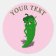 Ein grüner und heißer Pfefferkartoon-Charakter. Originelles Design mit grünem Text und rosa Hintergrund. Diese Aufkleber können als Etiketten auf Gläsern, Flaschen, Geschenkpackungen und vieles mehr verwendet werden! Dekoration für alle Fische, die Sie sich vorstellen können!