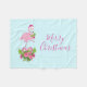 Eine Decke mit einem tropischen Thema Weihnachtsbramingo mit einer rosa Weihnachtsmannmütze. Unter seinen Füßen befindet sich ein Bonbonbons mit hübschen tropischen Blume und rosa Beeren. Ein Gezwitscher der Heiligen auf der Brust.