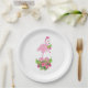 Rosa Flamingo in Weihnachtsmannmütze mit Candy Can Pappteller