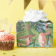 Rosa Flamingos waten in einer üppigen tropischen Lagune und neigen zu ihren Küken in diesem bunten Muster, das im Stil der Mitte des Jahrhundertsfarbe durch Zahlausrüstungen geschaffen wird. Fans der Mitte des Jahrhunderts entwerfen und Kitsch wird die Liebe, die ihre Geschenke sieht, die in diesem Spaßpapier eingewickelt werden, das mit diesen exotischen Vögeln gefüllt wird. Die Hauptfarben dieses Entwurfs sind Rosa, Blau und grüne Abstufungen.