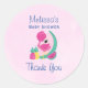 Babydusche (oder andere Veranstaltung) danke Ihnen Aufkleber. Entworfen mit einer niedlichen Illustration eines rosa Flamingo mit Wassermelonen und Ananas. Summerisch und tropisch.