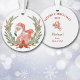 Dies ist ein bezauberndes Weihnachtsschmuck für Eltern oder Großeltern, um einem Kind zu geben, aber es kann leicht als Geschenk für jedermann angepasst werden. Die Vorderseite des Ornaments hat ein Aquarellbild eines rosa Flamingo-Vogels mit Weihnachtsmannmütze und Schal. Der Flamingo sitzt in einer Kiefernnadel, heilig und roter Beerenkranke. Die Rückseite des Ornaments hat Ihren eigenen Text in rot und grün. Die Textfelder werden durch einen kleinen Bonbons und einen Strauß getrennt. Ändern Sie den Text einfach zu allem, was Sie wollen!
