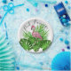 Rosa Flamingo, tropische Dschungel-Blätter Pappteller