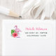 Wasserfarbene Malerei tropisches Blattwerk Adressetiketten mit einem niedlich rosa Babyflamingo.