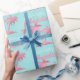 Rosa Flamingo und Palmen Bäume auf Aquamarinen Geschenkpapier