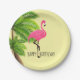 Rosa Flamingo- und Palmenblätterplatte Pappteller