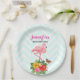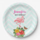 Rosa Flamingo und tropischer Hibiskus Extravagant Pappteller