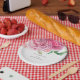 Teller aus Aquarellfarben, rosa und weißes Papier