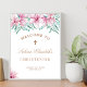Ein modernes Frühjahr- oder Sommerbaby-Girl oder -Junge Christening Begrüßungsschild Poster mit Aquarellblüten, rosa Magnolien-Blume, grünem Blattwerk, Eukalyptus-Blätter und einer handgeschriebenen Kalligraphie-Schrift. +++++++++++ Einfach mit Ihren Daten personalisieren! +++++++++++ Geeignet für moderne Blumengarten-, Garten- oder Sommergarten mit eleganten Baby-Taufzeremonien und Empfängen.