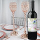 Schöne Hochzeitsweinetiketten mit schönen Aquarellfarben-Blume und silberfarbenem Satin-Band. Personalisieren Sie Ihre Begrüßung, oder erstellen Sie ein Label für Jubiläumsfeier oder Geburtstag.
