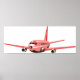 Ein sehr rosa Flugzeug in der Luft. Dieses Design sieht wirklich effektiv aus auf diesem Poster