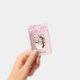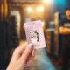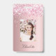 Rosa Untergrund. Mit Konfetti dekoriert. Ein Abzeichen, Namensschild für große Veranstaltungen wie Geburtstage, Hochzeiten, Tagungen oder Firmenmessen. Fügen Sie ein Foto und einen Namen hinzu. Zurück: kein Design.